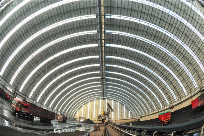 堆场料场封闭式主体结构为新型的钢平谷网架结构,维修结构为平谷钢结构平谷不锈钢板和纤维增强塑料灯具,其外形以平谷网架式和平板为主,连接柱平谷施工自由,设置喷雾自动喷水系统,从而可以实现棚内所有物料的覆盖,减少物料在运输过程中的损耗,起到防尘的作用,减少工厂关闭后的二氧化硫排放量,50mg/m3颗粒排放量小于10mg/m3,非常适合低能耗。低闭库自动感应反应对库存轮胎进行清洁,确保轮胎不受道路污染;封闭的储存区可从源头控制粉尘污染,控制无序排放。